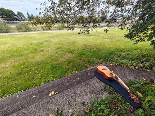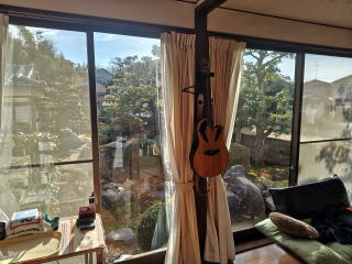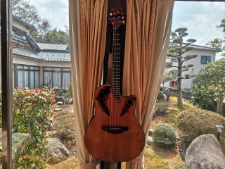 ホッとした気持ちのまま、アコギ弾き語りを約90分。コンパクトなヤイリ社製のトラベル・ギター「ノクターン」の