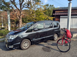 立ち寄り、目的地の塩津(北浅井の公営駐車場)に到着。 SERENA から自転車を降ろして、サイクリング