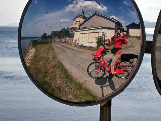 通行だから、ビワイチは反時計回りで」のアドバイス通り、左手、すぐ近くの琵琶湖を眺めながら、晴れの
