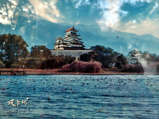 びセットとペットボトルのジャスミン茶。「観光」とまではいかないが、坂本城趾では少し歩いて写真を撮った。