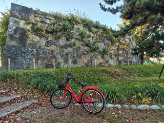 テニスコートに隣接した「天守台」(櫓台)に到着。そこに登って1時間くらいアコギ・タイム。16:30頃、自転車