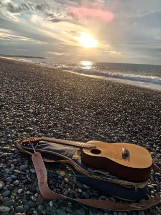 ホッとした気持ちのまま、アコギ弾き語りを約90分。コンパクトなヤイリ社製のトラベル・ギター「ノクターン」の