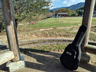 (家から30分くらい)。立派な四阿(あずまや)で、2時間くらいアコギ・タイム。弦の音や声の反響がいい